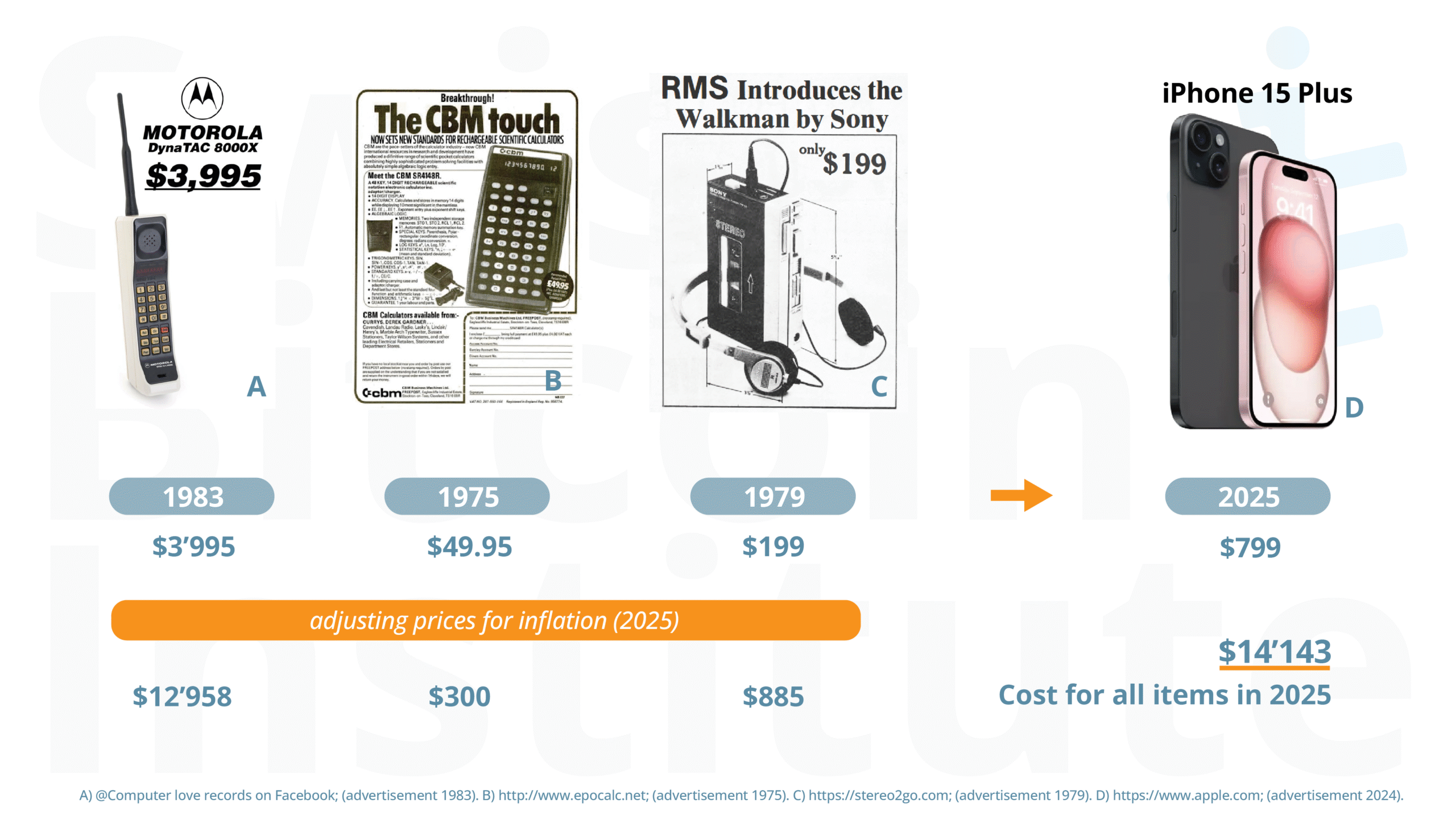 Abbildung 2: Technologiens deflationärer Effekt: mehr Wert für weniger. Repräsentative historische Beispiele von Verbraucherelektronik zeigen, dass technologischer Fortschritt Preise senkt, während sich die Funktionalität verbessert.